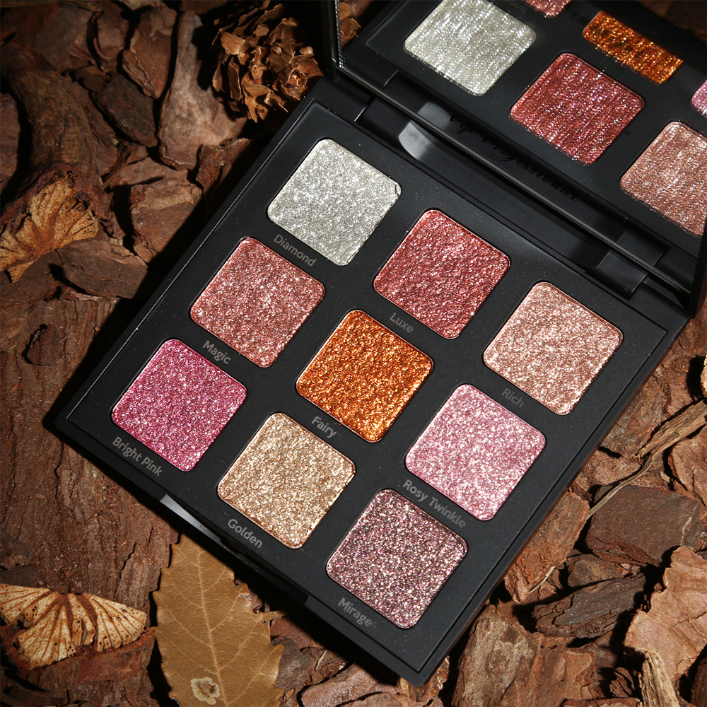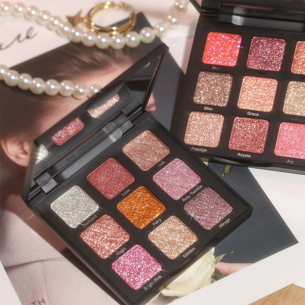 Contine 9 farduri cu sclipiri de diamante.
